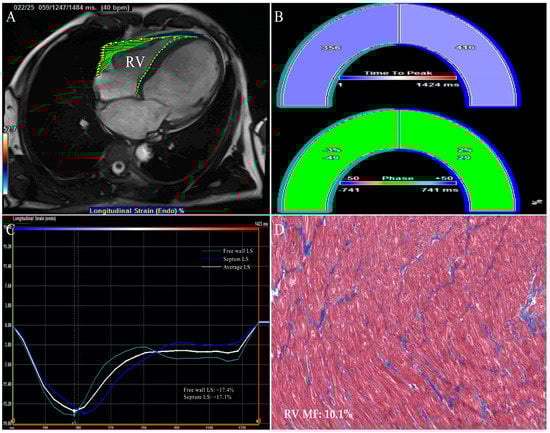 - Lisi, M.; Cameli, M.; Righini, F.M.; Malandrino, A.; Tacchini, D.; Focardi, M.; Tsioulpas, C.; Bernazzali, S.; Tanganelli, P.; Maccherini, M.; et al. RV Longitudinal Deformation Correlates With Myocardial Fibrosis in Patients With End-Stage Heart Failure. JACC Cardiovasc. Imaging 2015, 8, 514–522. [Google Scholar] [CrossRef]