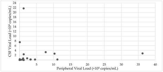 Relationship between CSF viral load and peripheral viral load (n = 21).