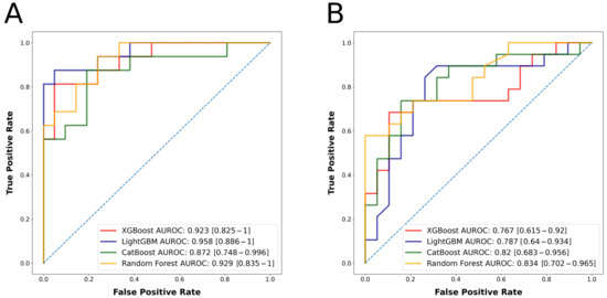 Python 3.7.15 was used to run ML analyses. We used four supervised ML algorithms: CatBoost, XGBoost, LightGBM, and Random Forest. With the Optuna optimization package, the area under the receiver operating characteristic curve was optimized (AUROC). The Optuna streamlines the utilization of various cutting-edge optimization methods for efficient and rapid hyperparameter optimization [22]. The Bayesian optimization algorithm Tree-Structured Parzen Estimator Sampler (TPESampler) was used to create AUROC estimations that served as a guide for the optimization phase. The final models were formed using the training set and optimized hyperparameters.