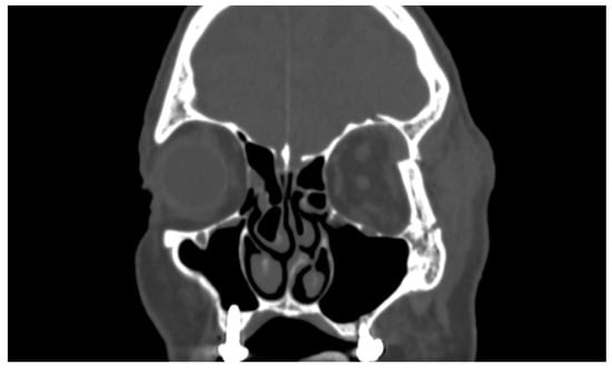 The study was conducted at the Maxillofacial Surgery Unit of the Federico II University Hospital, Regional Referral Center for Cranio-Maxillo-Facial Traumas (Article 1 paragraph 203 L.F. Campania Region 2011, Italy). It was a retrospective, monocentric observational study. The sample size consisted of 402 patients who reported a fracture of the zygomaticomaxillary complex and orbital floor. All clinical investigations and procedures were conducted according to the principles expressed in the Declaration of Helsinki. Ethical approval to access and use the data was obtained from the Federico II/Cardarelli Research Ethic Committee (81/2022). Patients were evaluated by age, gender, etiology, type of fracture, preoperative orbital side effects and symptoms. Blind/visually impaired patients, patients suffering from osteoporosis/osteomalacia or psychiatric disorders were excluded. Patients admitted in this study did not suffer from any globe injuries, the management of which would take priority over any maxillofacial procedures. All data were extrapolated from medical records from 1 January 2012 to 1 January 2022 and analyzed in a period of time which goes from 15 June 2021 to 15 June 2022. Definitive diagnosis was obtained by performing computed tomography (CT) (Figure 1).