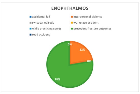Additionally, 15% of patients who reported an interpersonal violence accident were described as having diplopia, 33% had exophthalmos and 50% had enophthalmos.