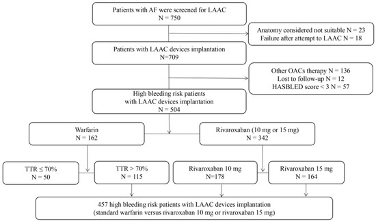 Patient flowchart. AF, atrial fibrillation; LAAC, left atrial appendage closure; OACs, oral anticoagulants; TTR, therapeutic range.