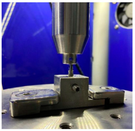 Once the change in the insertion torques with the cycles were studied, the study of micromovements was carried out by applying a gradual tension to the dental implant. For this purpose, 60 implants of each of the 4 dental implant systems (2 with an external connection (S and K) and two with an internal connection (E and V)) were used. Incremental loads were applied from 20 to 200 N at an approximate angle of 30° direct to the implant-screwed provisional abutments (Figure 4).