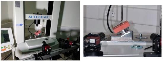 An electromechanical testing machine was used to apply the loads (Autograph AG-1 5 Kn Shimadzu, Tokyo, Japan). The images were taken at each 20 N load step by means of high-resolution Q-star systems, which had a sensitivity of 1 µm in the displacements. The quantification of the resulting micromotion was carried out by a high-resolution digital image correlation (DIC–VIC 3D Correlated Solutions). Figure 5 shows the test configuration.
