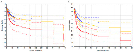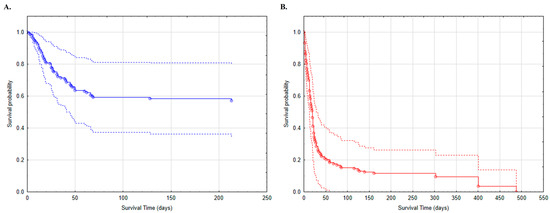 In this research, as in other papers on similar topics, original analyses were performed, taking into account local specificity, a different set of predictors, and especially concomitant disease. For example, the study by Tiutan et al. (2022) showed that procalcitonin is a prognostic factor in cancer patients with COVID-19; however, this study did not take into account the survival time, and the observation time (death during or within 30 days of hospitalization) was also different [36]. Another interesting paper by Torres-Ruiz et al. (2021) also varied from our study, because each patient had the same set of lab tests performed on admission, blood samples were stored which improved the data availability, and the Cox model was used to predict both progression in COVID-19 and death, while we focused on death only [37].