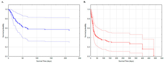 Other variables mentioned as factors of poor prognosis both among oncology patients and in general are age and comorbidities [11,21]. In our study, we successfully obtained the multivariate Cox proportional hazards model for comorbidities, but no disease was a variable that affected the risk of death in patients with both COVID-19 and cancer. In turn, age significantly influences the risk of death in our two investigated groups, therefore we do not present this variable as a cause of death in cancer patients; it represents a risk factor for patients with COVID-19 both with and without cancer. One of the more thorough systemic reviews conducted by Zhang et al. (2021) also indicates that sex (male) and age (elderly) appear to be risk factors associated with poorer prognostics in oncology patients [22]. In contrast to the oncology group, chronic kidney disease and intubation in the control group were found to be the indicators of poor prognosis.