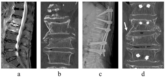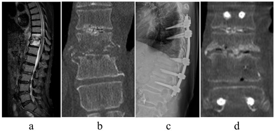 - Tong, Y.J.; Liu, J.H.; Fan, S.W.; Zhao, F.D. One-stage debridement via oblique lateral interbody fusion corridor combined with posterior pedicle screw fixation in treating spontaneous lumbar infectious spondylodiscitis: A case series. Orthop. Surg. 2019, 11, 1109–1119. [Google Scholar] [CrossRef]