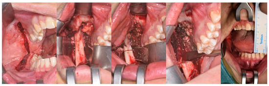 Surgical sequence of the intraoral coronoidectomy. The patient shows an immediate improvement in the MMO up to 40 mm.