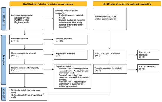 Maloh, J.; Engel, T.; Natarelli, N.; Nong, Y.; Zufall, A.; Sivamani, R.K. Systematic Review of Psychological Interventions for Quality of Life, Mental Health, and Hair Growth in Alopecia Areata and Scarring Alopecia. J. Clin. Med. 2023, 12, 964. https://doi.org/10.3390/jcm12030964
