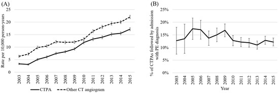 The aims of the current work are therefore: (1) to assess potential overtesting by describing trends in CTPA utilization and diagnostic yield in WA from 2003 to 2015, and (2) to assess potential overdiagnosis by describing mortality outcomes as a proxy marker of PE severity.