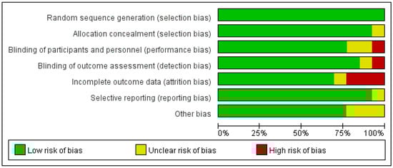 Proportional risk of bias graph: judgement of the percentage of bias items arising from all included studies.