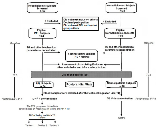 - Norata, G.D.; Grigore, L.; Raselli, S.; Redaelli, L.; Hamsten, A.; Maggi, F.; Eriksson, P.; Catapano, A.L. Post-prandial endothelial dysfunction in hypertriglyceridemic subjects: Molecular mechanisms and gene expression studies. Atherosclerosis 2007, 193, 321–327. [Google Scholar] [CrossRef]