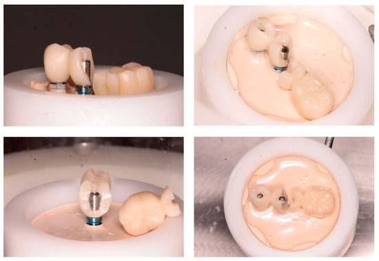 After curing the cement (auto- and photo-polymerized), the crowns were screwed onto the implants with a torque of 20 N cm, following the instructions of the manufacturer.