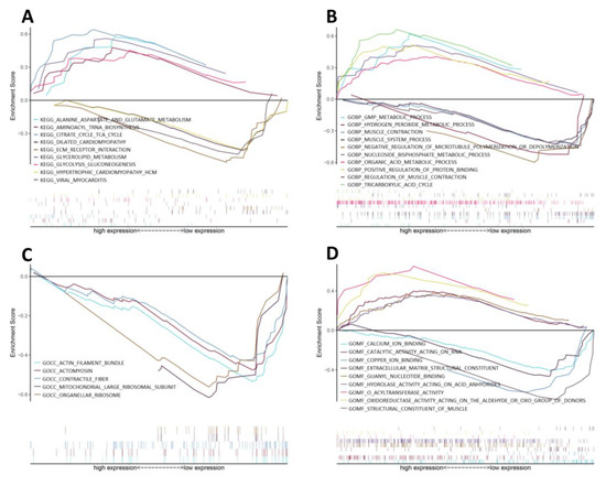 GSEA was conducted to investigate the differences in enriched GO terms and KEGG pathways between CIP-stimulated and control samples. The enriched biological processes (BPs) indicated that metabolic processes such as the tricarboxylic acid cycle (TCA), nucleoside bisphosphate metabolic process and guanosine monophosphate metabolic process were upregulated, whereas ion binding, components of smooth muscle contraction and ECM components showed trends of downregulation, as shown in detail in Figure 2.
