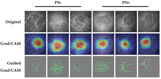 Figure 2 demonstrates representative Grad-CAM and Guided Grad-CAM saliency map images from subjects with correctly detected PN− and correctly detected PN+. Corneal nerves were highlighted in both correctly detected PN− and PN+ images, particularly evident in the Guided Grad-CAM images. Based on previous studies [2], these were appropriate features for the AI-based DLA to be utilizing for classification. However, due to the post-hoc nature of these explainability methods they are less informative in explaining individual decisions, with interpretations risking confirmation bias and misuse [12].