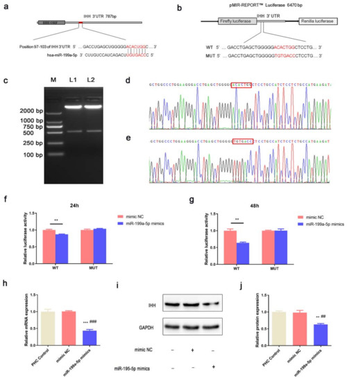 3.4. miR-199a-5p Directly Regulated IHH in PHCs