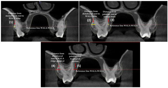 Thus, the present study was carried out to compare the distances to the WALA ridge and WALA bone from the buccal root surface, and from the palatine root surface of upper molars to the cortical bone and buccal and palatine gingival portion, in the different facial patterns, in the presence and absence of transverse bone discrepancies, and in the combination facial pattern—transverse bone discrepancy.