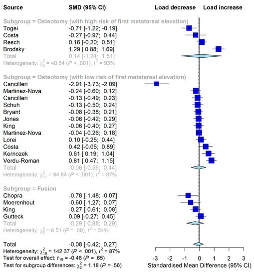 | Osteotomy (high-elev.) | −0.39 (−6.01 to 5.22) | 94 | −0.05 (−0.38 to 0.29) | 0 | −0.04 (−0.78 to 0.70) | 37 |