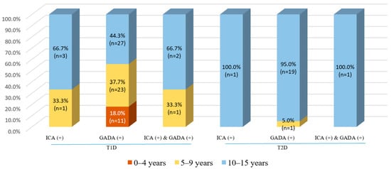 The following supporting information can be downloaded at: https://www.mdpi.com/article/10.3390/jcm12041420/s1, Supplementary Table S1: Clinical characteristics of pediatric patients with T1D whose ICAs and GADAs are both negative and at least one positive.
