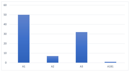 A type fractures according to the AO classification system occurred in all cases, with a single case being classified as B1 with A1 subtype. A total of 50 fractures were classified as type A1, 7 as type A2, and 32 as type A3 (Figure 2).