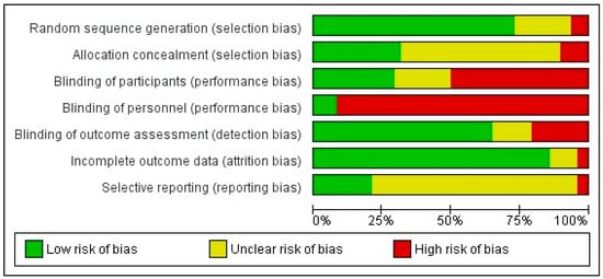 Risk of bias graph: review authors’ judgements about each risk of bias item presented as percentages across all included studies.