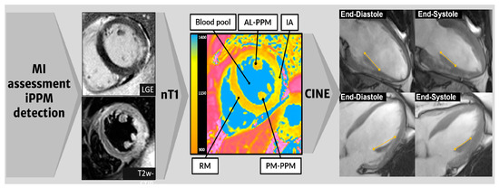 Cardiac magnetic resonance (CMR) has been established as the best non-invasive modality for iPPM assessment because of the high spatial resolution and intrinsic contrast of soft tissues, enhanced by the use of a gadolinium-based contrast agent (GBCA). The identification of myocardial edema in T2 weighted sequences and necrosis in the late gadolinium-enhanced (LGE) images enables characterization and quantification of the myocardial damage.