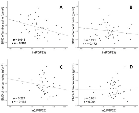 | Our study | 2021 | 43 | Cross-sectional | iFGF23 | DXA | Yes | iFGF23 had a negative correlation with BMD levels of both lumbar spine and femoral neck. |