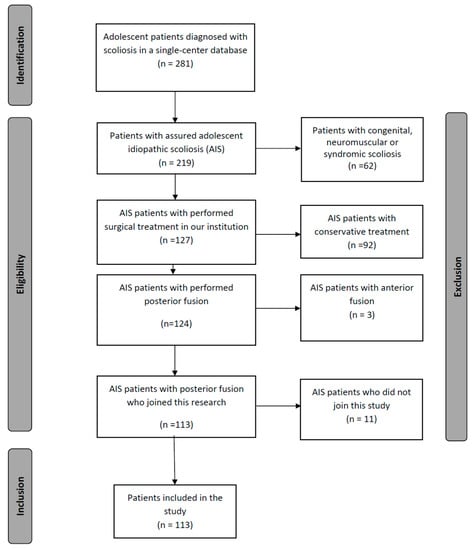 - White, S.F.; Asher, M.A.; Lai, S.-M.; Burton, D.C. Patients’ Perceptions of Overall Function, Pain, and Appearance After Primary Posterior Instrumentation and Fusion for Idiopathic Scoliosis. Spine 1999, 24, 1693. [Google Scholar] [CrossRef]