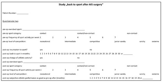 Pepke, W.; Madathinakam, A.; Bruckner, T.; Renkawitz, T.; Hemmer, S.; Akbar, M. Return to Sport after Adolescent Idiopathic Scoliosis (AIS) Correction Surgery: A Retrospective Data Analysis. J. Clin. Med. 2023, 12, 1551. https://doi.org/10.3390/jcm12041551