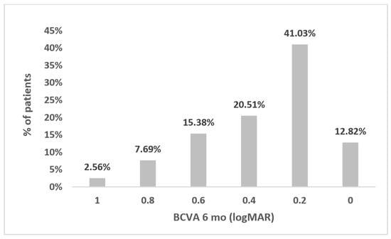 The percentage of eyes achieving the mean BCVA 6 months postoperatively is shown in Figure 6.