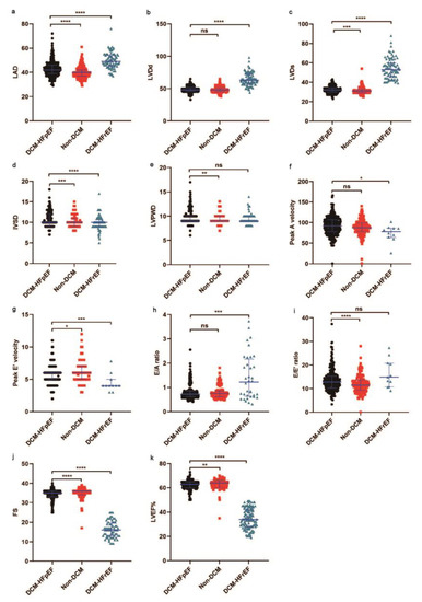 All statistical analyses were performed with SPSS 25.0 (SPSS Inc., Chicago, IL, USA). In this study, DCM-HFpEF was considered as a reference group. Therefore, the primary analyses were performed in two approaches: (1) the non-DCM versus the DCM-HFpEF group and (2) the DCM-HFrEF versus the DCM-HFpEF group. Continuous values were expressed as mean ± standard deviation (SD) for data of normal distribution, or medians and the 25th to 75th interquartile range (IQR) for data of non-normal distribution. Categorical variables were expressed as numbers and percentages. Differences in numerical variables were analyzed using the Student’s t-test or Mann–Whitney U test. Categorical variables were analyzed by the Chi-square test or Fisher’s exact test.
