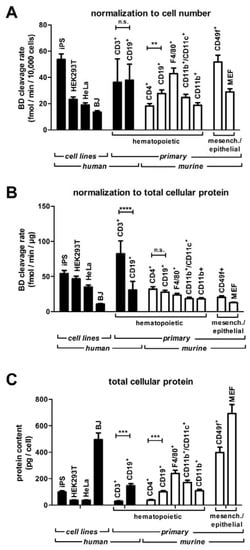 | CD19+ spleen B cells | 1.3 | 32.6 | 3.3–16.6 | 9.7× 104 | |
