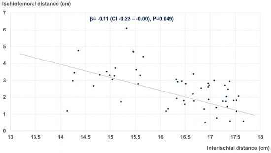 p = 0.003), interischial distance (β = −0.11 (CI −0.23–−0.00),