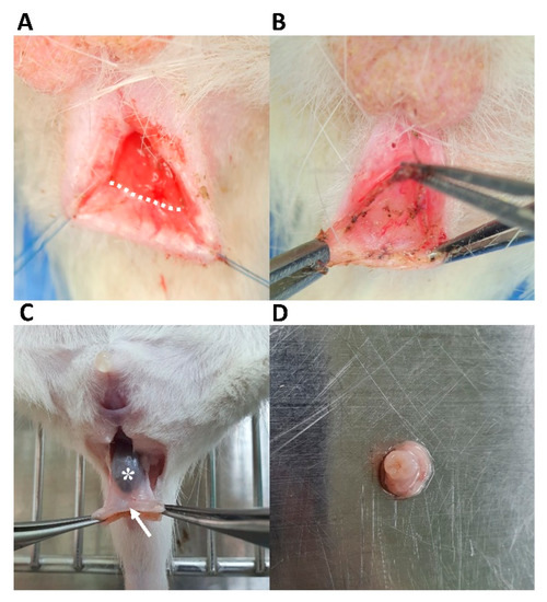 - Trébol, J.; Georgiev-Hristov, T.; Vega-Clemente, L.; García-Gómez, I.; Carabias-Orgaz, A.; García-Arranz, M.; García-Olmo, D. Rat model of anal sphincter injury and two approaches for stem cell administration. World J. Stem Cells 2018, 10, 1–14. [Google Scholar] [CrossRef]