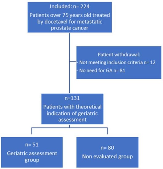 Among them, 131 had a theoretical indication for geriatric assessment, 51 completed GA and 80 did not complete GA (Figure 1).