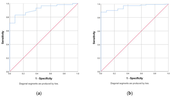 ROC (receiver operating characteristic) curve corresponding to the proposed activity score in (a) Crohn’s disease and (b) ulcerative colitis.