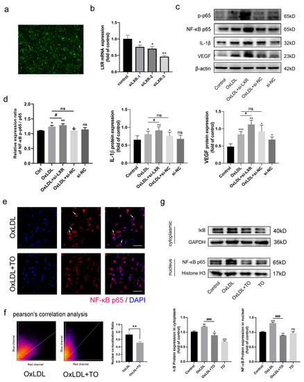 3.4. LXR Agonist Inhibits the OxLDL-Activated NF-κB Pathway