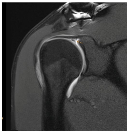- Matsushita, R.; Yokoya, S.; Negi, H.; Matsubara, N.; Akiyama, Y.; Adachi, N. Evaluation of subscapularis tendon tears of the anterosuperior aspect using radial-sequence magnetic resonance imaging. JSES Int. 2021, 6, 97–103. [Google Scholar] [CrossRef]