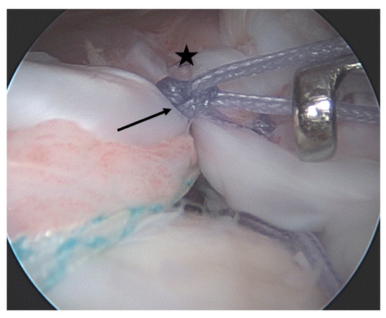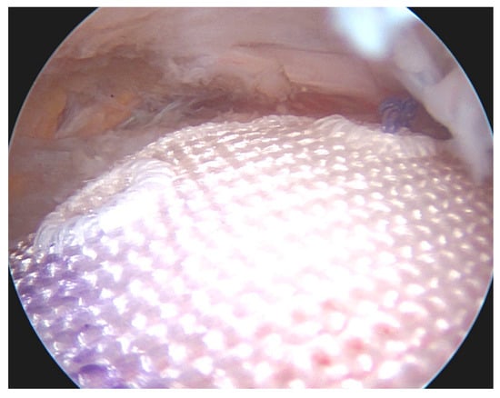- Ek, E.T.; Perret, M.C.; Borbas, P. Arthroscopic Knotless Repair of Complete Full-Thickness Tears of the Subscapularis Tendon Through a Single Portal. Arthrosc. Tech. 2020, 9, e439–e443. [Google Scholar] [CrossRef] [PubMed]