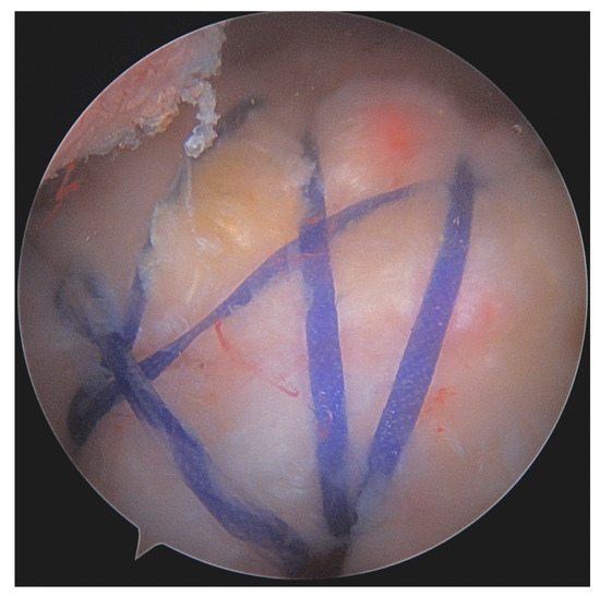 - Gröger, F.; Hackl, M.; Buess, E. Arthroscopic Suture-Bridge Repair of the Subscapularis Tendon—“Inside and Outside the Box” With Preservation of the Comma Sign. Arthrosc. Tech. 2021, 11, e31–e36. [Google Scholar] [CrossRef]