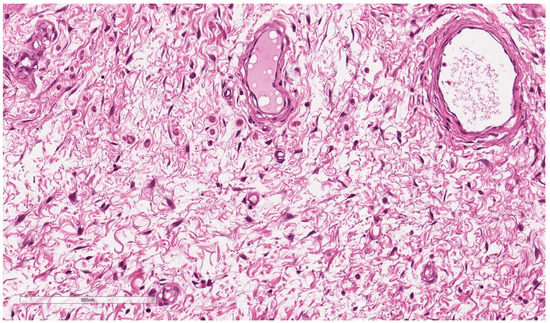 - Mehrotra, K.; Bhandari, M.; Khullar, G.; Sharma, S. Large Superficial Angiomyxoma of the Vulva-report of Two Cases with Varied Clinical Presentation. Indian Dermatol. Online J. 2021, 12, 605–607. [Google Scholar] [PubMed]