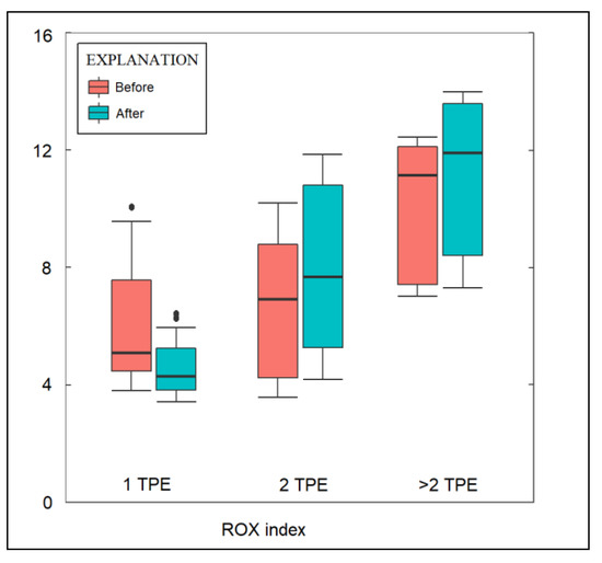 The influence of TPE on the ROX index by number of TPE sessions.