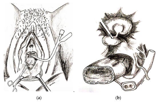 - Fouad, L.S.; Chen, A.H.; Santoni, C.J.; Wehbe, C.; Pettit, P.D. Revisiting Conservative Management of Vesicovaginal Fistula. J Minim. Invasive Gynecol. 2017, 24, 514–515. [Google Scholar] [CrossRef] [PubMed]