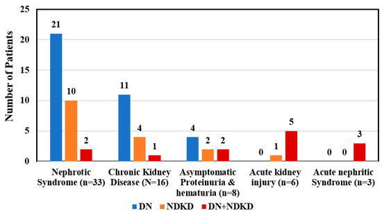 - Prakash, J. Non-diabetic renal disease (NDRD) in patients with type 2 diabetes mellitus (type 2 DM). J. Assoc. Physicians India 2013, 61, 194–199. [Google Scholar] [PubMed]