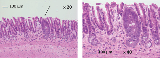 Antral intestinal metaplasia was found in one SG rat (Figure 4). No gastric dysplastic or cancerous lesions were observed.