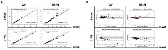Chicago/Turabian StyleLim, Ha-Jin, Seung-Yeob Lee, and Hyun-Jung Choi. 2023. "Evaluation of the Accuracy of Cr and BUN Using the ABL90 FLEX PLUS Blood Gas Analyzer and the Equivalence of Candidate Specimens for Assessment of Renal Function" Journal of Clinical Medicine 12, no. 5: 1940. https://doi.org/10.3390/jcm12051940