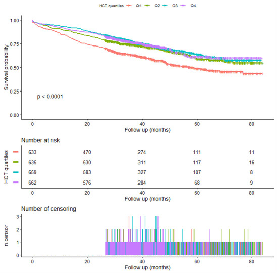 3.3. Multivariate Analysis of Association between HCT and Mortality