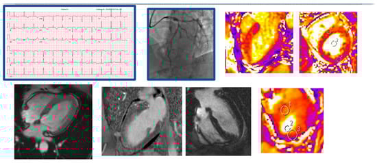 - Sörensson, P.; Ekenbäck, C.; Lundin, M.; Agewall, S.; Bacsovics Brolin, E.; Caidahl, K.; Cederlund, K.; Collste, O.; Daniel, M.; Jensen, J.; et al. Early Comprehensive Cardiovascular Magnetic Resonance Imaging in Patients With Myocardial Infarction With Nonobstructive Coronary Arteries. J. Am. Coll. Cardiol. Img. 2021, 14, 1774–1783. [Google Scholar] [CrossRef]