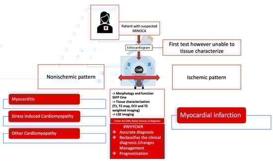 - Pasupathy, S.; Beltrame, J.F. Refining the Role of CMR Imaging in MINOCA. Cardiovasc. Imaging 2021, 14, 1784–1786. [Google Scholar] [CrossRef]