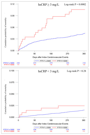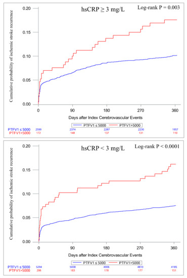 3.3. Associations of PTFV1 with Ischemic Stroke Recurrence According to hsCRP Levels